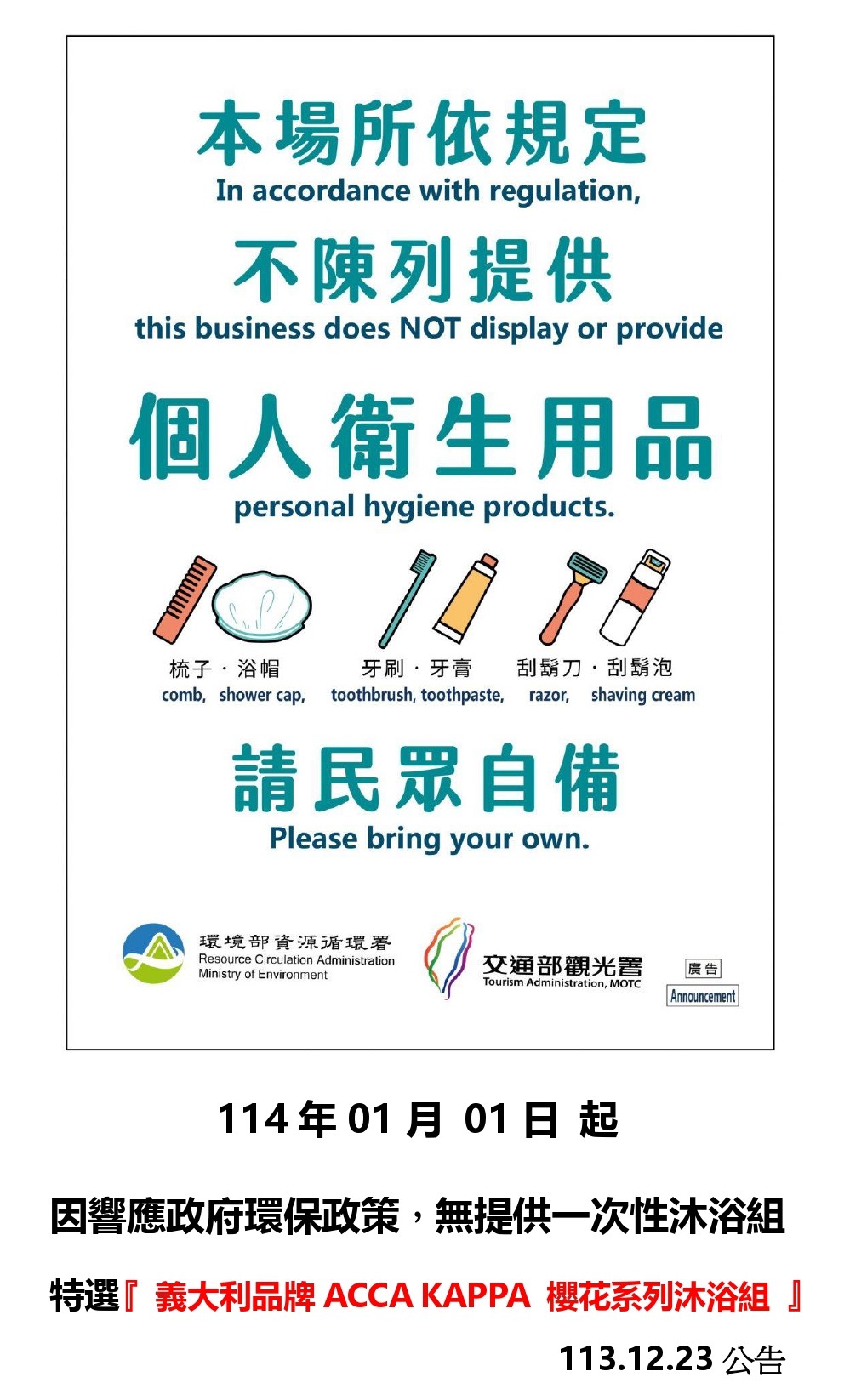 標題:環保政策<無提供一次性備品>